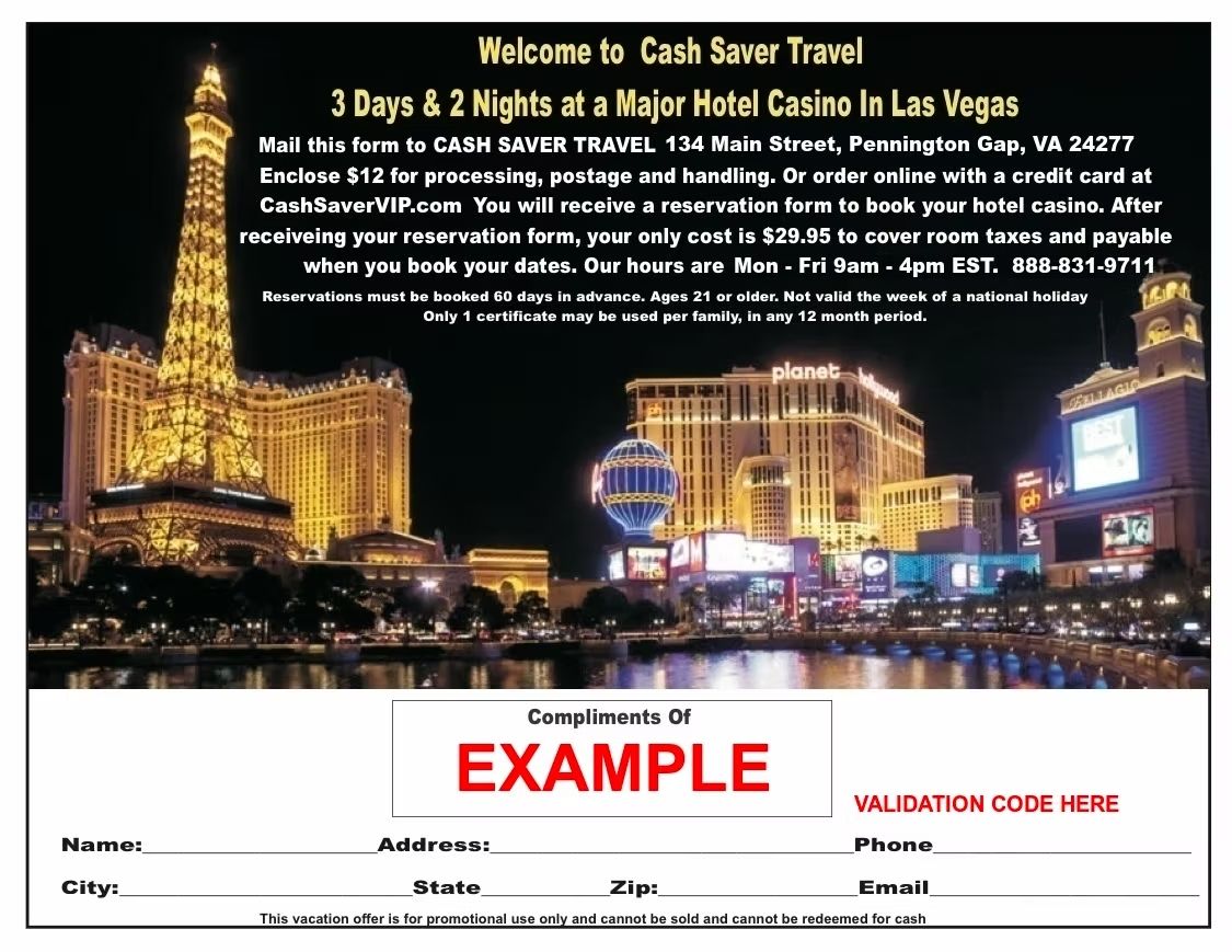 - 3Day/2Night Las Vegas Hotel Casino Stay Certificates